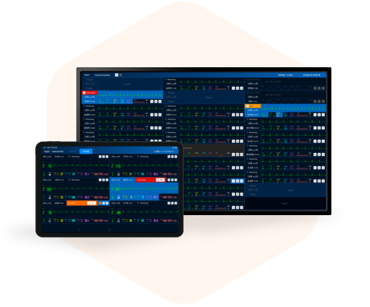 Using a dashboard, ward medical staff can monitor the real-time vital signs of patients admitted to the hospital, such as electrocardiogram readings, heart rate, respiration, oxygen saturation levels, blood pressure, and body temperature. By analyzing the bio signal data in real-time, the staff can effectively identify any emergency arrhythmias, cardiac arrests, and Early Warning Scores indicating abnormalities. This allows for timely and appropriate medical intervention to be initiated.